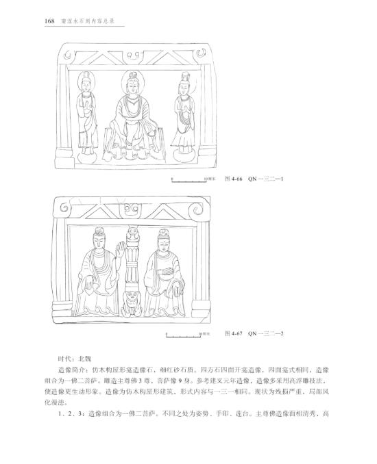 南涅水石刻石雕数量多,时间跨度大,经北魏、东魏、北齐、北周、隋、唐、宋七个朝代520余年,以北魏、东魏时期为主。石刻有单体造像、组合造像和方体四面造像叠置组合几种形式,总计800余件/组。