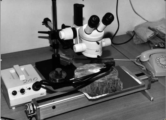 图三 测量年轮宽度的水平移动平台和体视显微镜